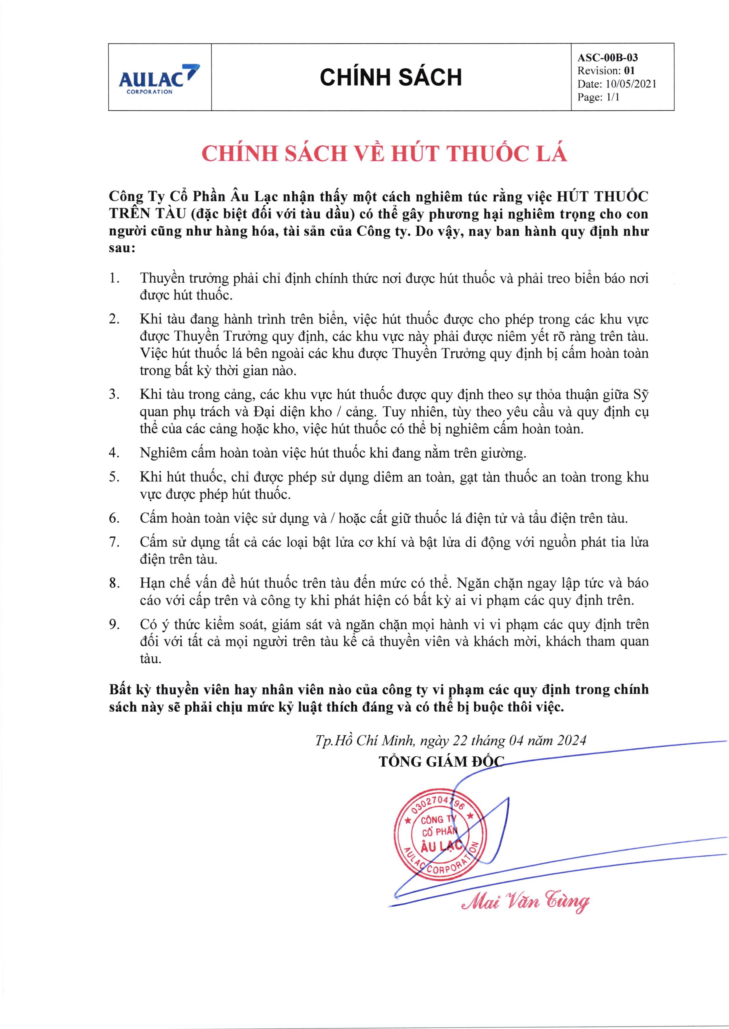 Chính sách về hút thuốc lá