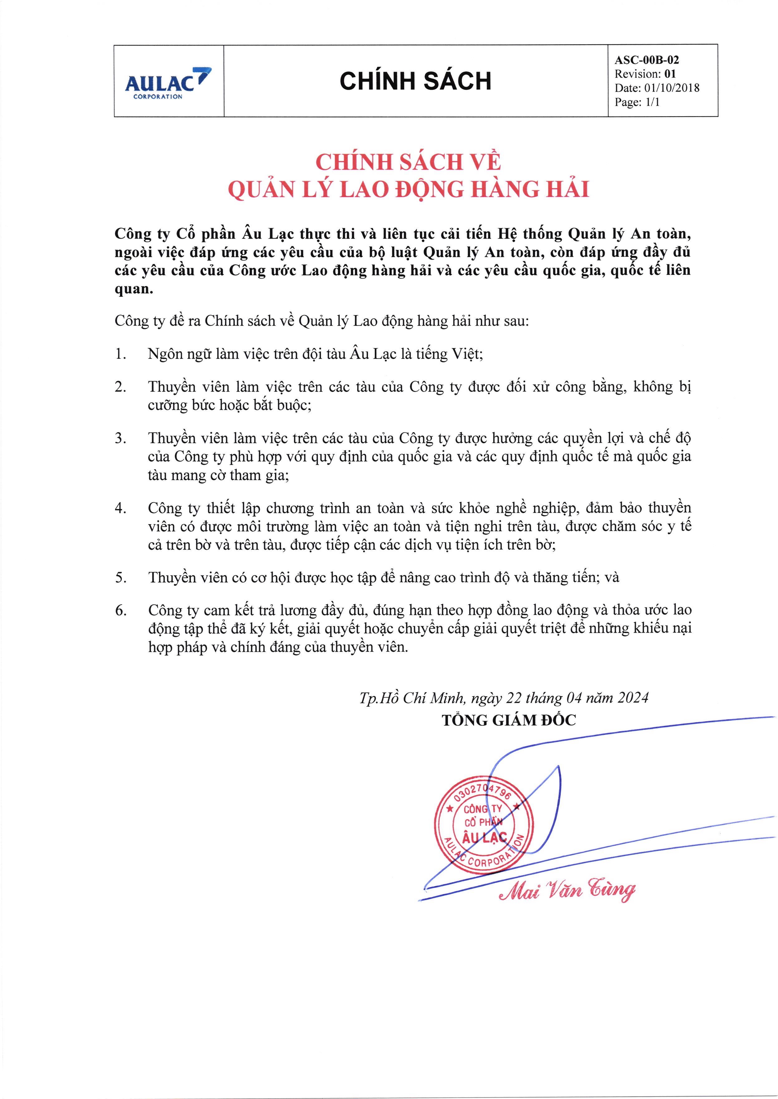 Chính sách về quản lý lao động hàng hải