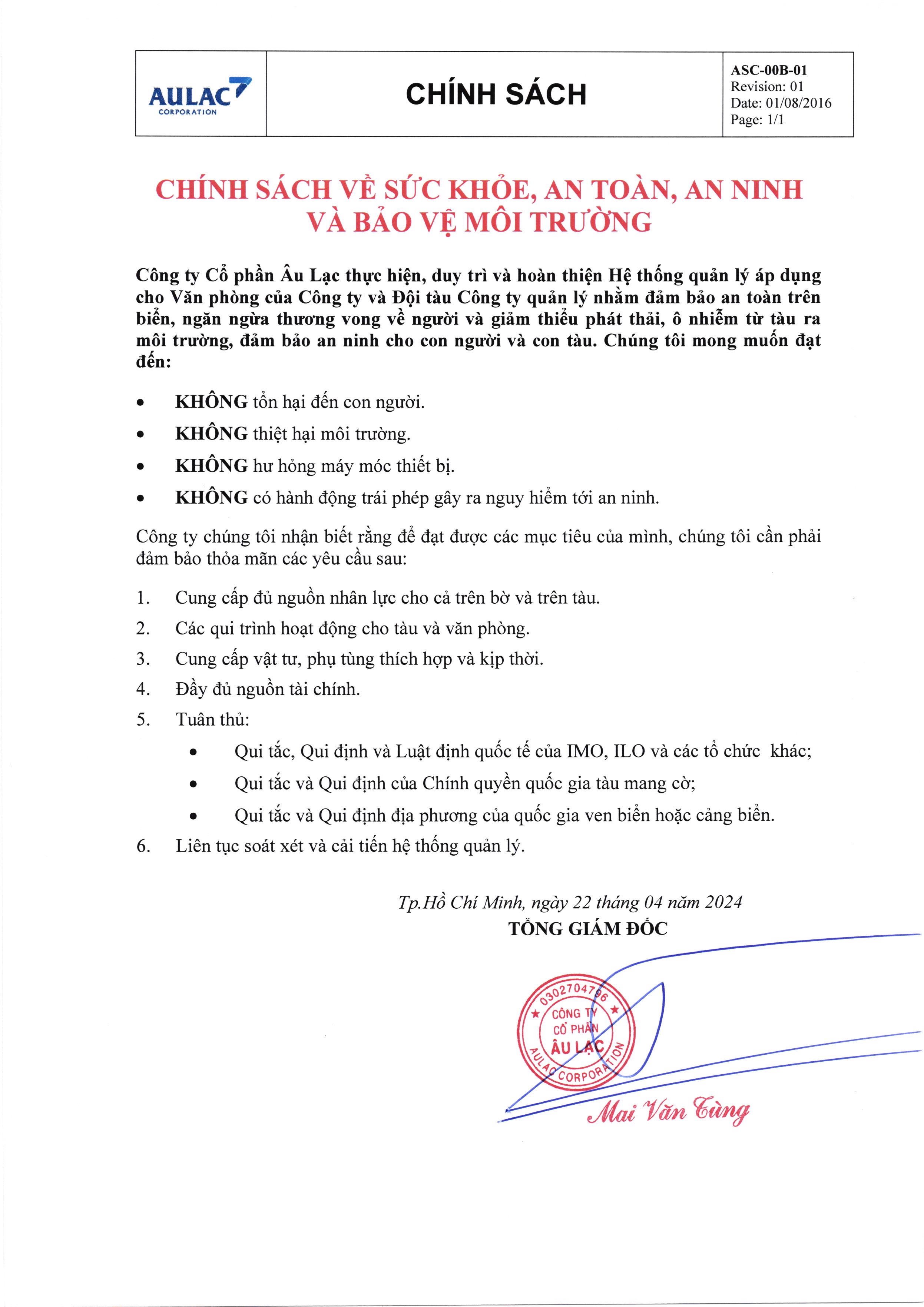 Chính sách về sức khỏe, an toàn, an ninh và bảo vệ môi trường